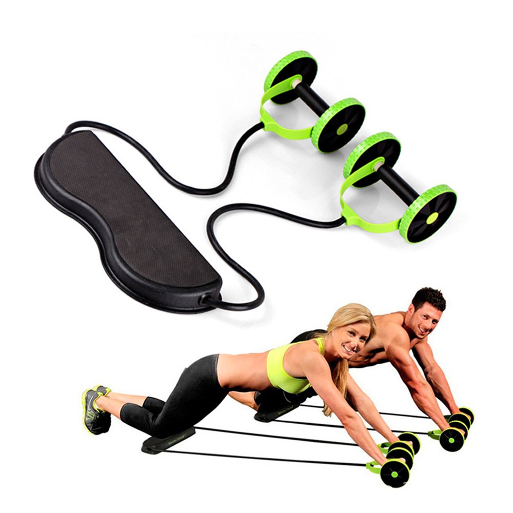 Double Wheel Ab Roller with Resistance Bands and Knee Pad
